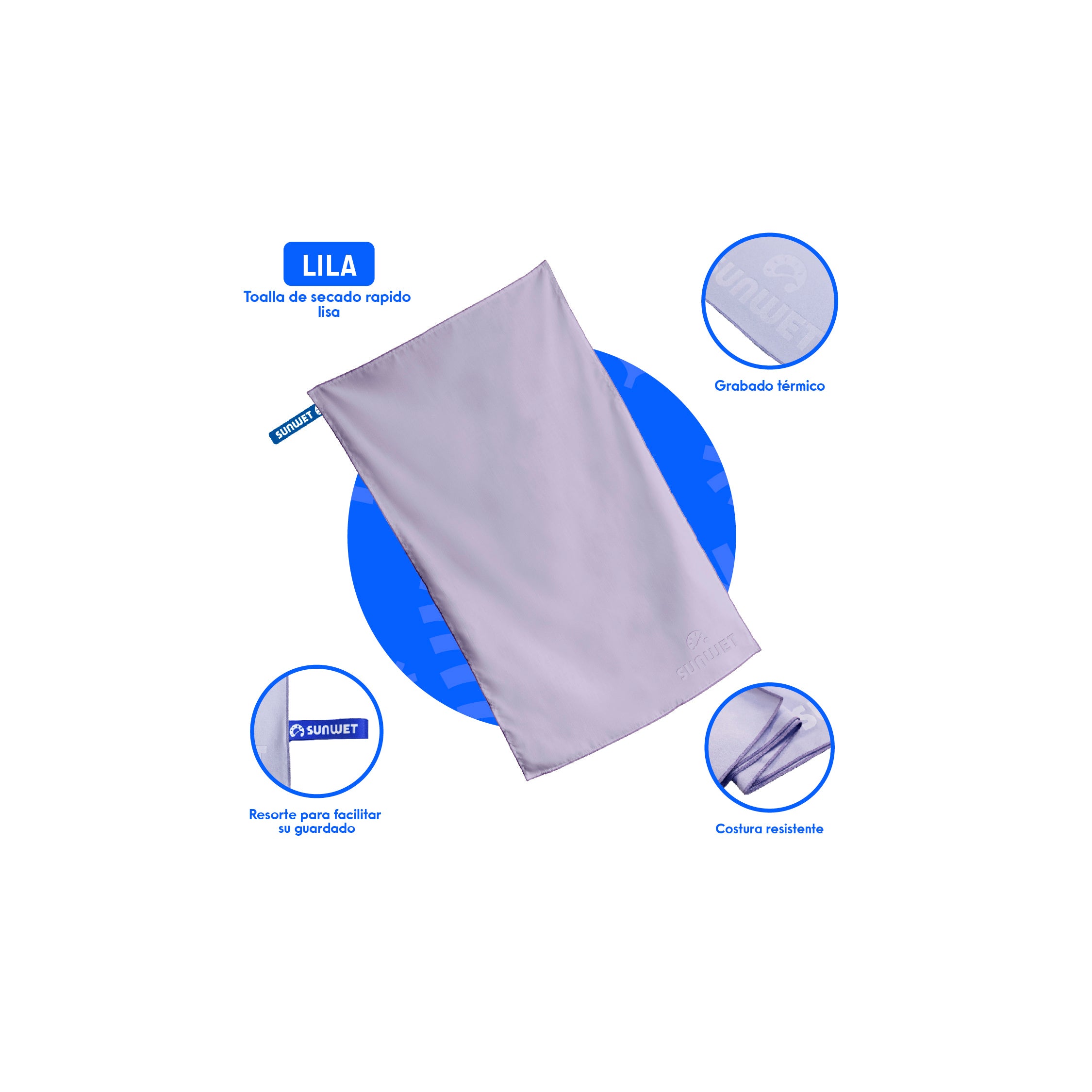 Toalla de microfibra lisa combinación lila con costura lila, de secado rápido, super absorbente, ligera y muy compacta, ideal para viajes, gimnasio, alberca, actividades al aire libre, playa y de uso diario.